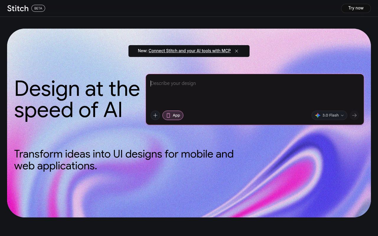 Generates interface designs from text prompts. UI design for the AI era.