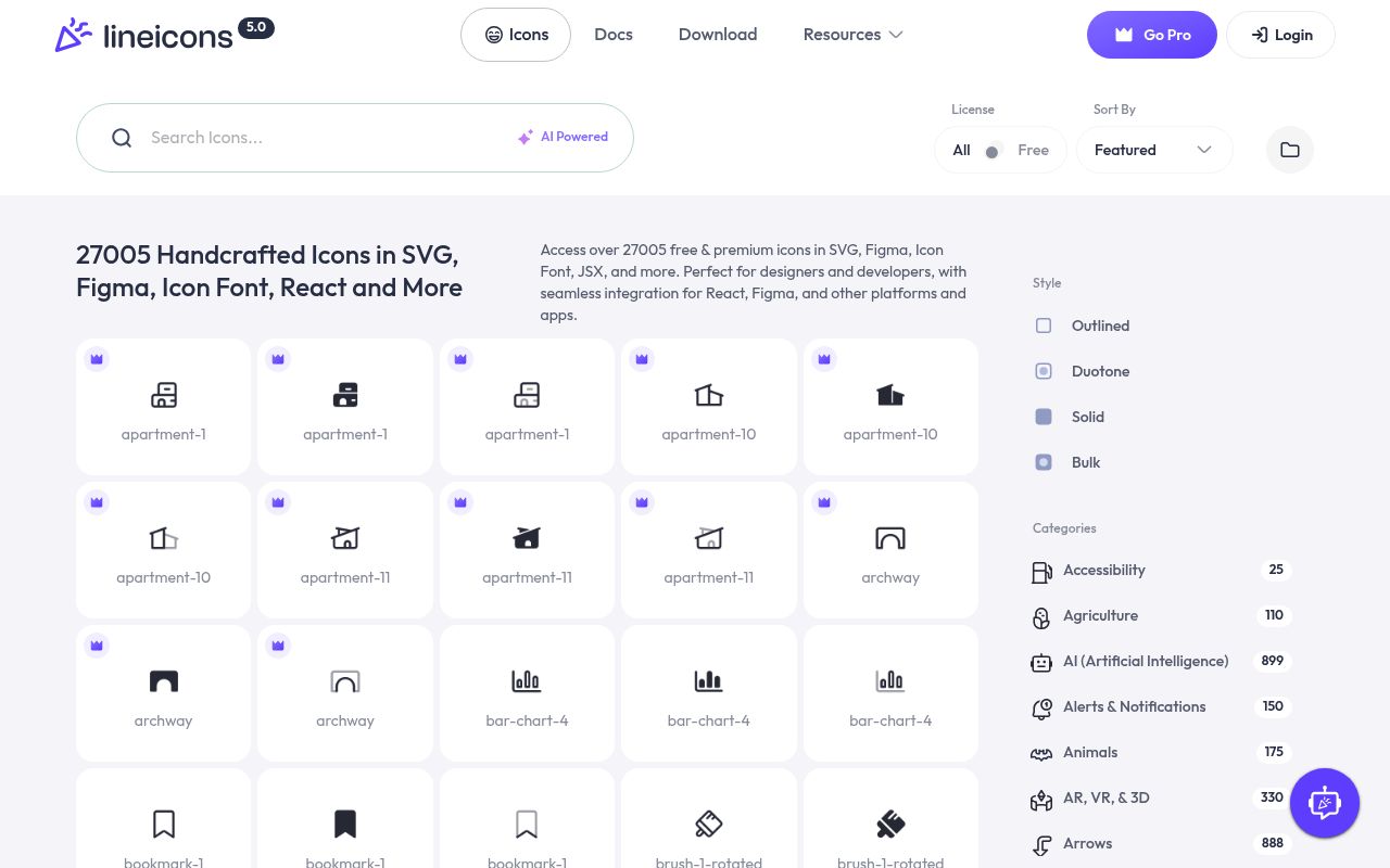 5000 Pro, 532 Free Line Icons categorized into 40+ different categories - select, view edit, download SVG and start using.